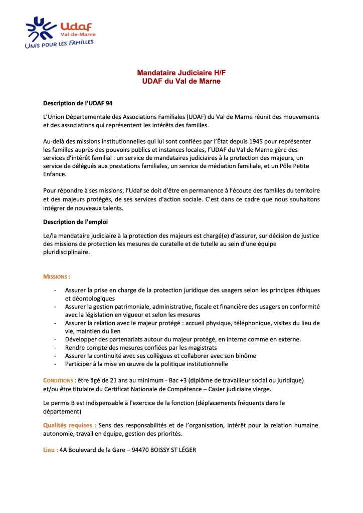 Mandataire Judiciaire à la Protection des Majeurs